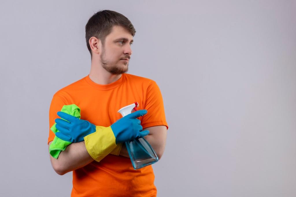 Hochwertige Mikrofasern mit leicht feuchter Anwendung binden Partikel elektrostatisch, statt sie zu verschieben. Farbcodierung verhindert Kreuzkontamination. Präzise Rand- und Sockelleistenpflege reduziert Staubnester. Abonnieren Sie unsere Tipps, um die richtige Faserart und Feuchte für Ihre Oberflächen zu wählen.